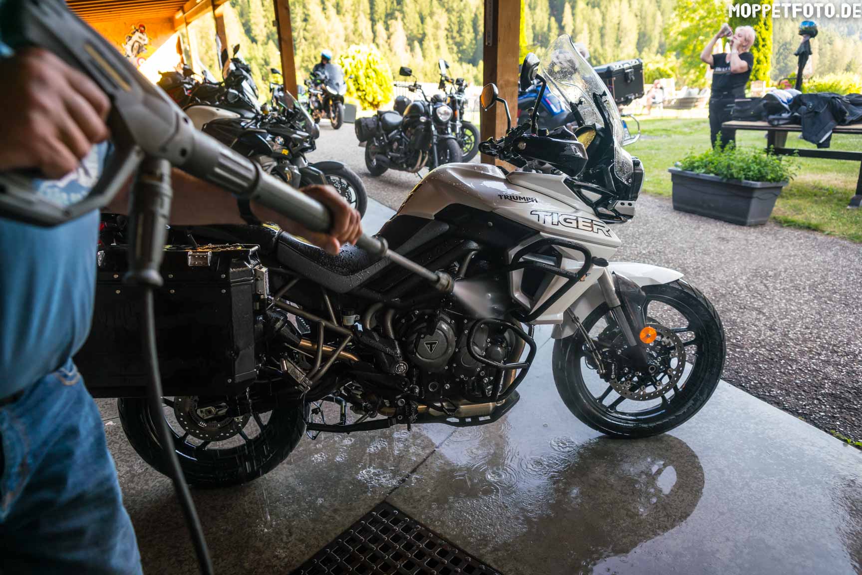 | Washing area for motorbikes, with sponge and water hose |