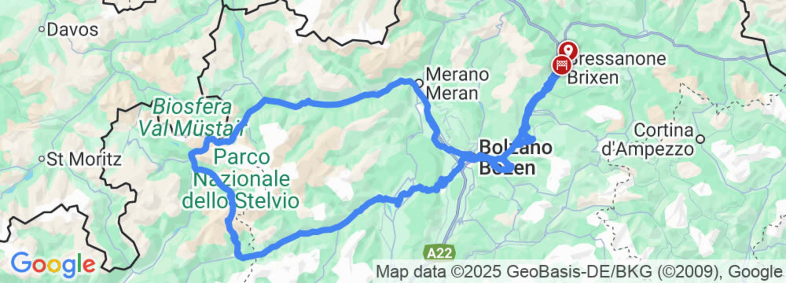 We then roll to Ponte di Legno, Santa Caterina Valfurva, the famous ski resort of Bormio, accelerate up to the Stelvio Pass and down the countless hairpin bends into the upper Vinschgau Valley to Trafoi. We then take the long Vinschgau road out to Merano, where you can stop for a bite to eat in the beer garden of the Forst brewery.