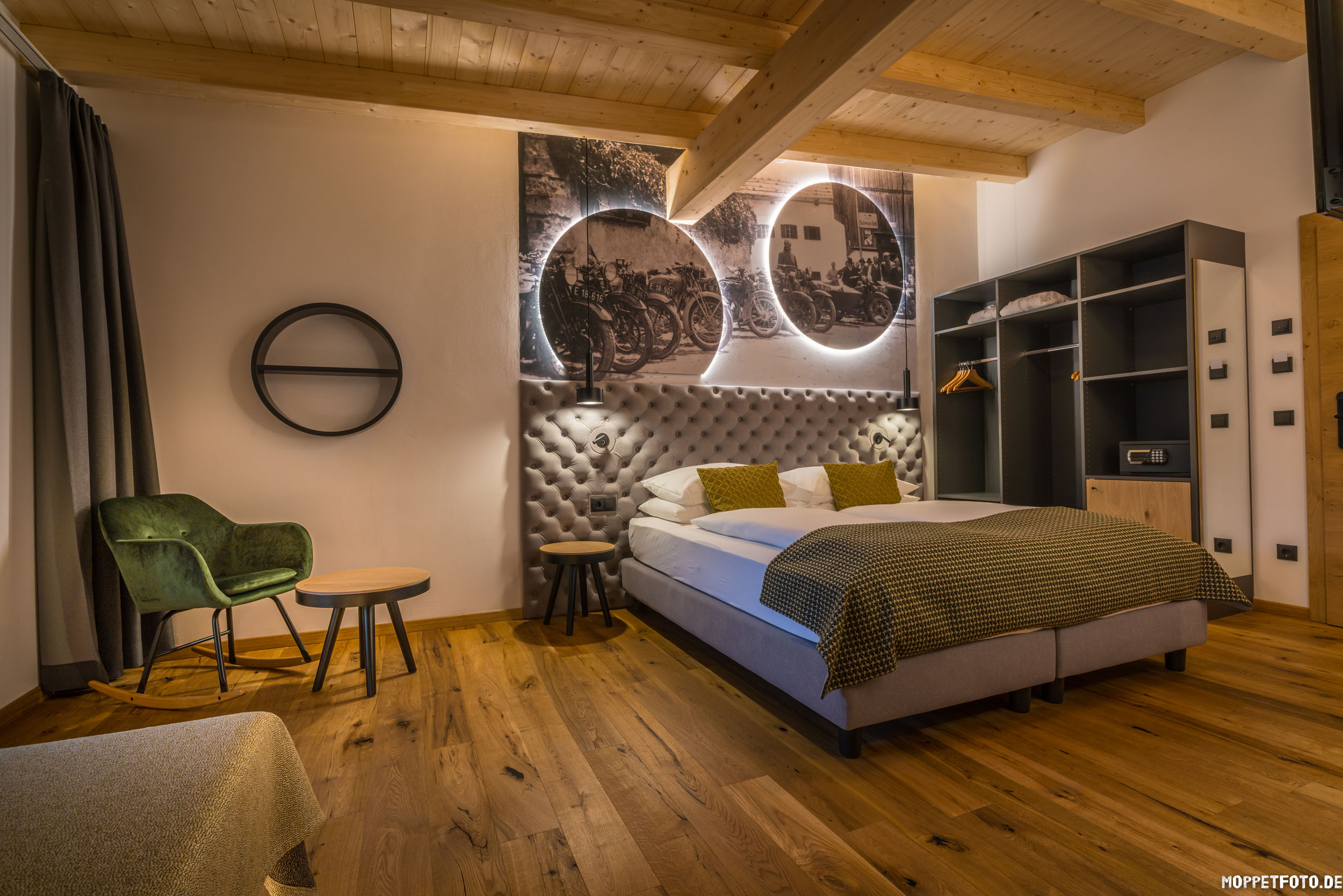 Hier trifft sich die Biker-Szene. Dieses MoHo - Motorrad Hotel ist Zentrum für Benzingespräche. Alles dreht sich um Motoren auf zwei Rädern und hier findest du unter anderem die Topadressen für Clubausfahrten. Die Gäste im Hotel sind überwiegend Motorradfahrer und die Bike-Kompetenz vor Ort ist top.