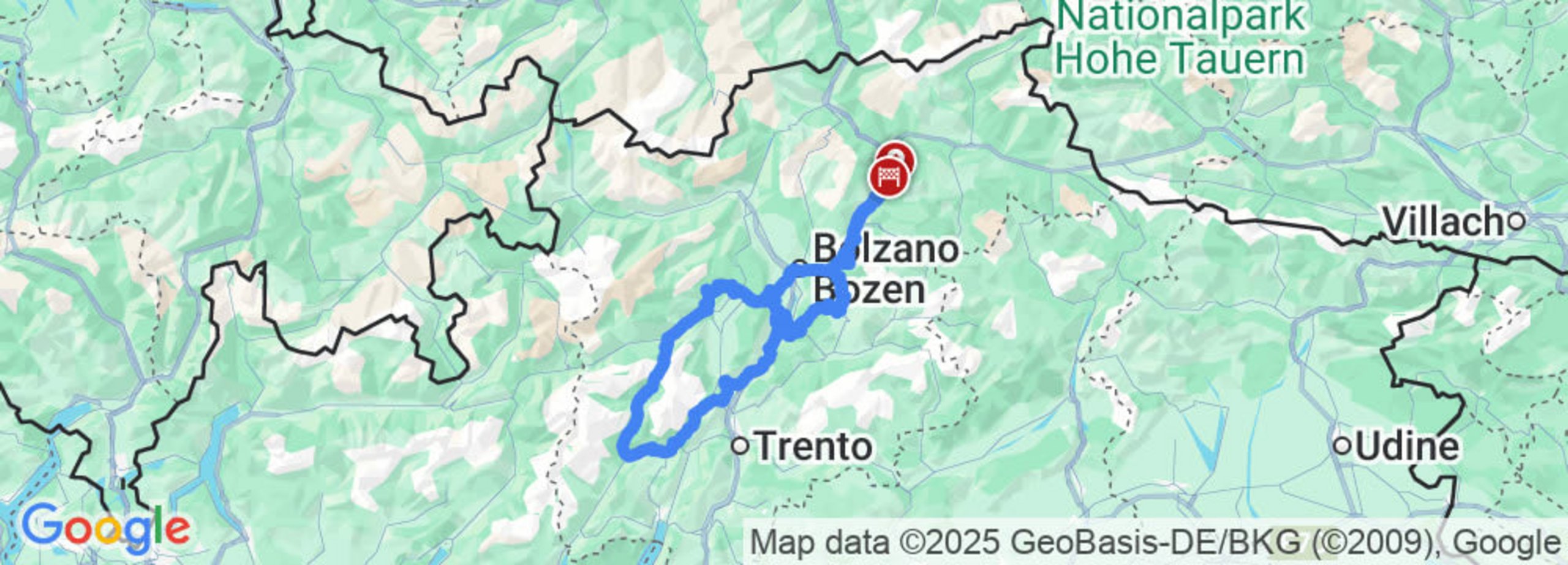 Gestartet wird diese Tour gegen den Uhrzeigersinn in Natz im Eisacktal - Brixen - Bozen und führt nach Kaltern an der Weinstrasse im Bozner Unterland. Von hier kurven wir erst einmal auf den Mendelpaß, weiter nach Castelfondo, Laurein, Varollo-Scanna, Tozzaga, Croviana und Dimaro im Val di Sole. Weiter nach Folgarida, zum allseits bekannten Skiort Madonna di Campiglio, weiter nach Pinzolo, Spiazzo. Weiter nach Preore, Coltura, vorbei am Lago di Ponte Pià, Stenico, San Lorenzo in Banale und schliesslich an den Lago di Molveno. Danach fahren wir weiter nach Andalo und Fai della Paganella, gelangen nach Mezzolombardo und Mezzocorona, Roverò della Luna, Kurtinig an der Weinstraße, Margreid, Kurtatsch, Tramin und sowie Kaltern. Nach einem leckeren Gelati am Kalterersee bringen wir den immer noch handwarmen Motor auf Touren und nehmen den Heimweg nach Natz in Angriff.