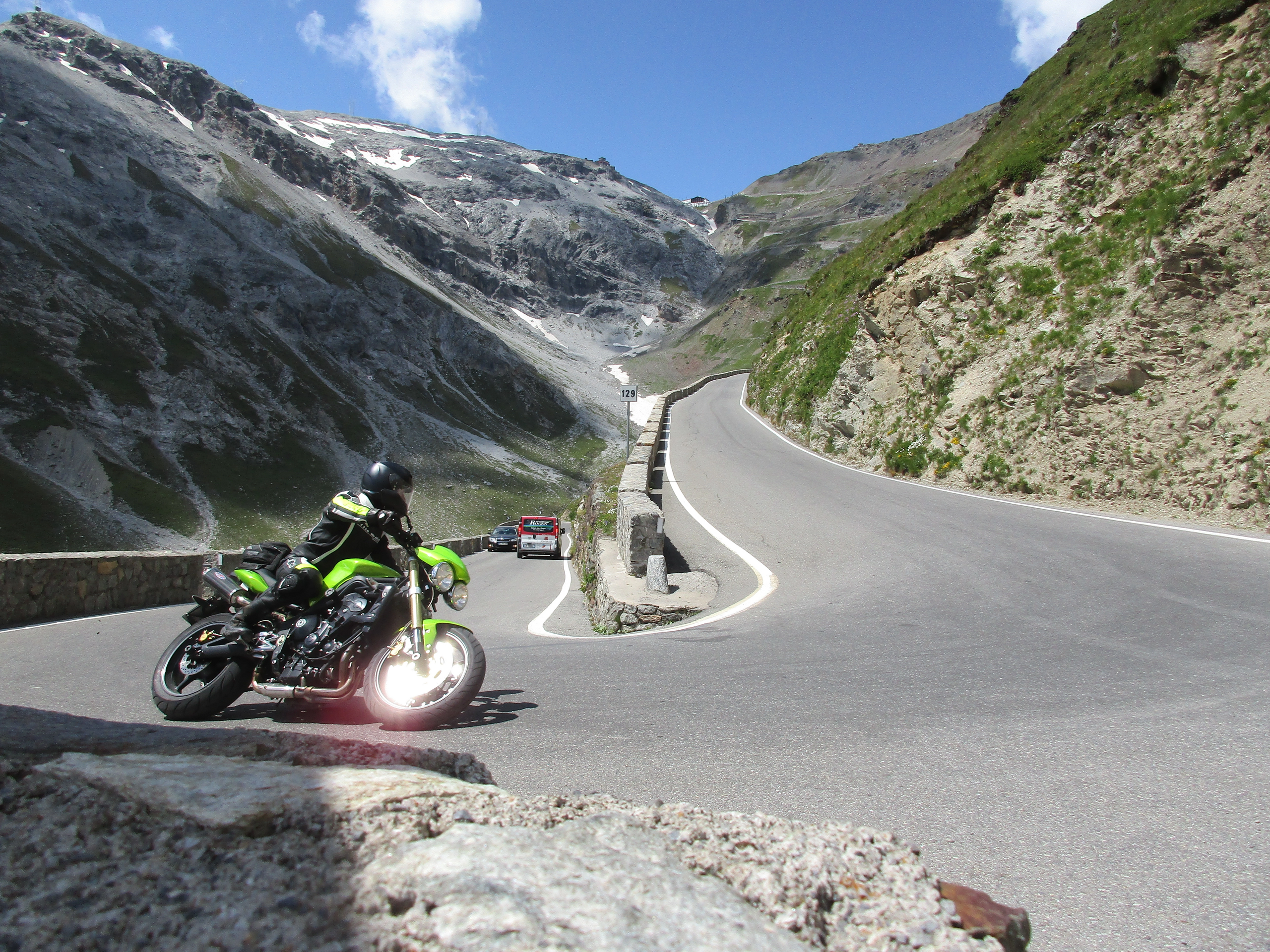Die Stilfserjoch-Tour ist in jeglicher Ausführung eine Tour mit sehr hohem fahrtechnischem Anspruch. Alleine die 48 teilweise sehr engen Spitzkehren auf der „Vinschger Seite“ sorgen bei