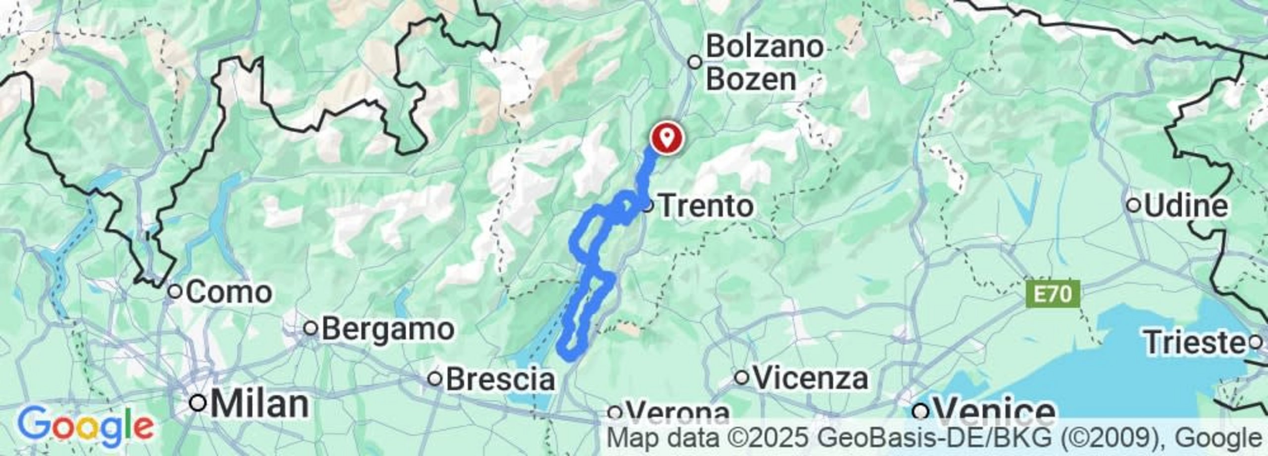 Kurtinig - Trento - Vezzano - Toblinosee - Ponte Arche - Fiavé - Riva del Garda - Torbole - Mori - Ferrara di Monte Baldo - Spiazzi - Caprino Veronese - Prada - Malcesine - Torbole - Arco - Dro - Toblinosee - Vezzano - Trento - Kurtinig