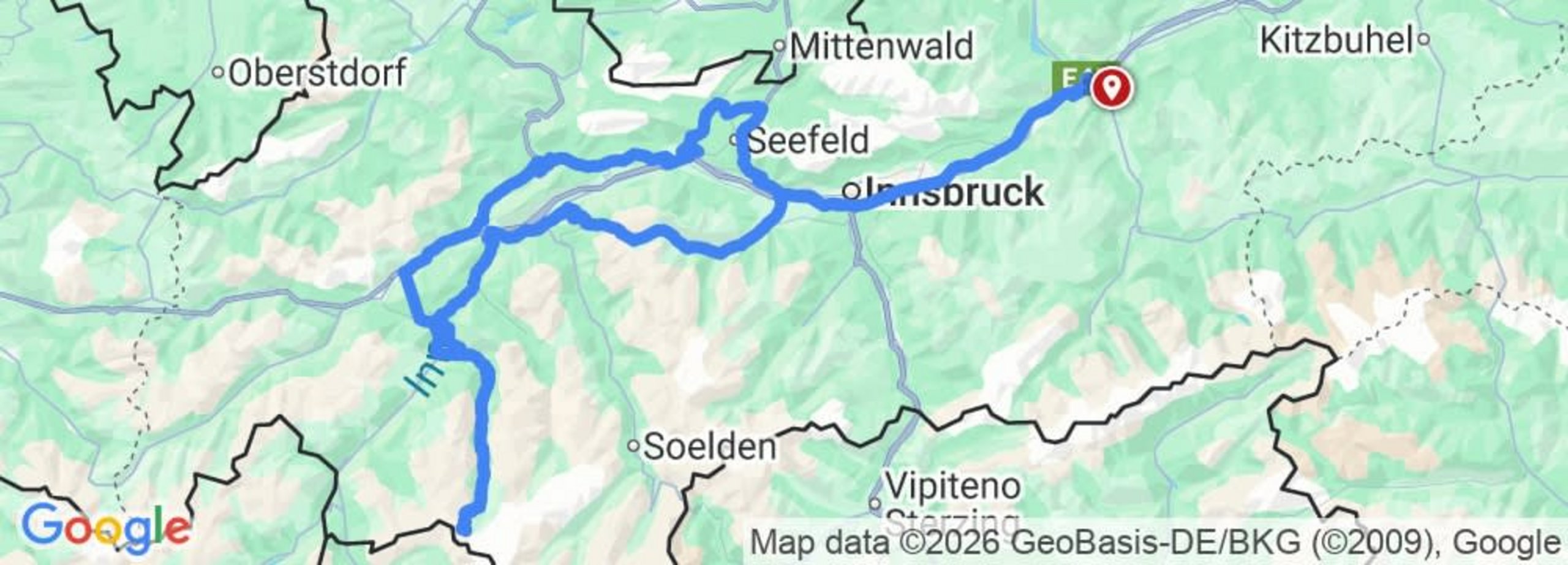 Hotel Sonnleiten, Bruck am Ziller → Sellrain → Kühtai (2.017 m) → Piller Höhe → Kaunertaler Gletscherstraße (2.750 m) → Imst → Holzleitensattel → Leutasch → Scharnitzpass → Zirler Berg → Hotel Sonnleiten