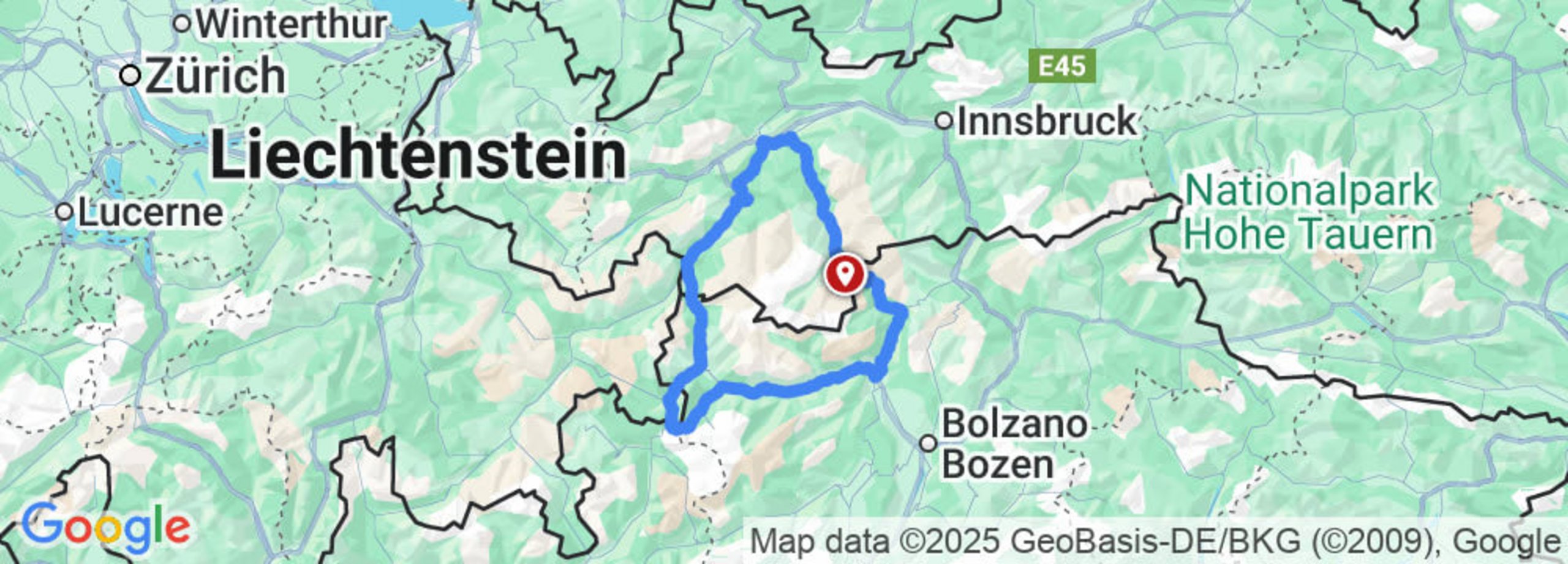 Hochgurgl – Timmelsjoch – Meran – Vintschgau – Spondinig – Trafoi – Stilfserjoch – Val Müstair (CH) – Glurns – Laatsch – Reschenpass – Prutz – Kauns – Piller Bergstraße – Wenns (Pitztal) – Ötz - Hochgurgl