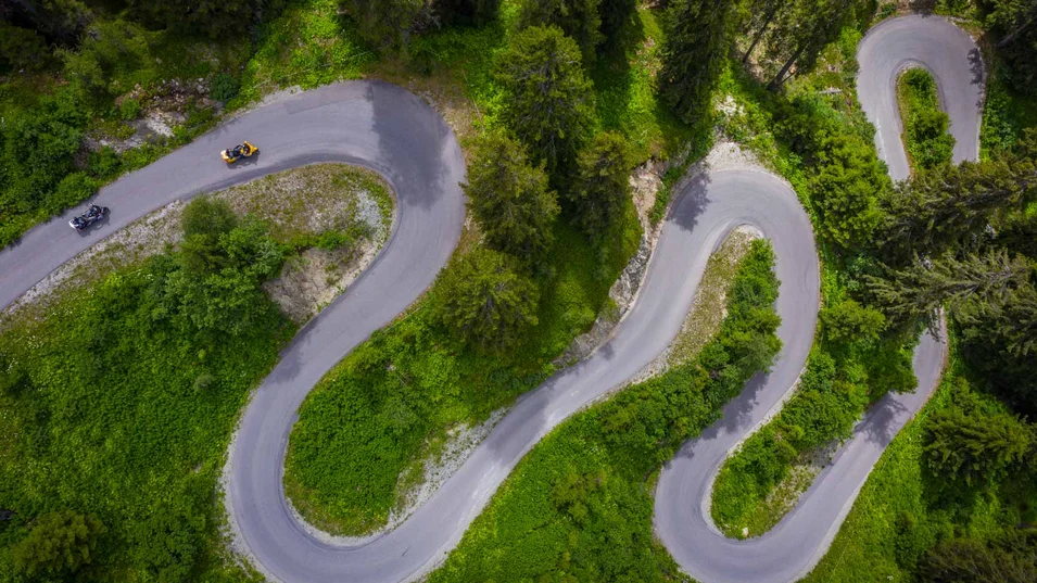 Kurven, Pässe, Panoramen: Im Paznaun erwarten dich Traumstraßen wie die Silvretta Hochalpenstraße & grenzenlose Tourmöglichkeiten.