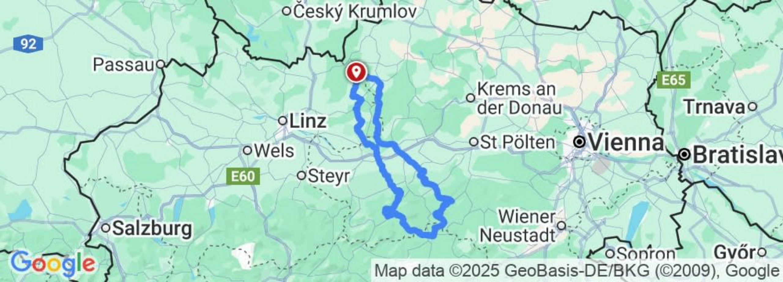 De route loopt door het Waldviertel met zijn kleine kronkelweggetjes naar de Donau en steekt deze over in Ypps/Persenbeug. Daarna moet je over de hoofdweg naar Wieselburg fietsen en dan afslaan over ongebruikte wegen naar kasteel Plankenstein. De route gaat dan verder via Wastl am Wald (1110 meter boven zeeniveau) naar Maria Zell, een van de beroemdste bedevaartsoorden van Oostenrijk. Via de Erlaufsee (vergeet je zwemspullen niet) klimt de route omhoog naar de Zeller Regen (1121 meter boven zeeniveau) en naar Lunz am See. De route voert door kleine, mooie valleien en bergketens terug naar de Donau. We steken de Donau over bij Grein en keren dan terug naar het hoogtepunt van het Mühlviertel met zijn kronkelende wegen.